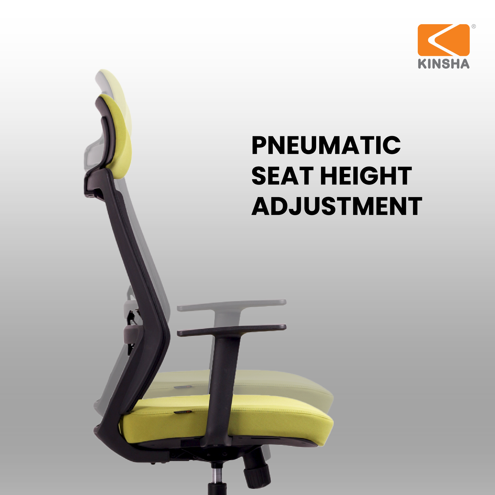 "Pneumatic Seat Height Adjustment" allows easy customization of chair height using an gaslift mechanism for enhanced comfort and ergonomics