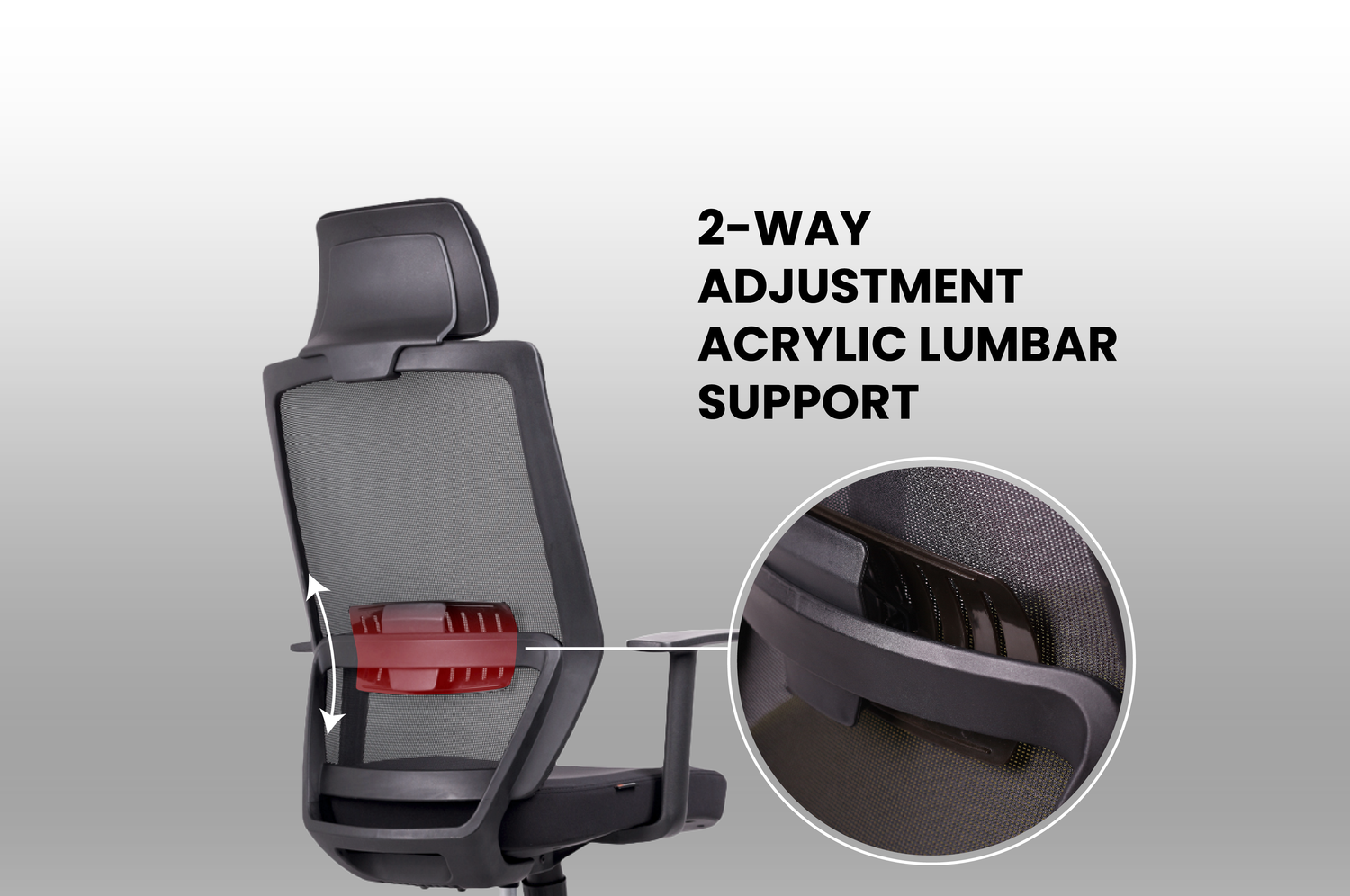 Adjustable lumbar support allows you to customize the height of the lower back support, ensuring a personalized fit for optimal comfort and posture